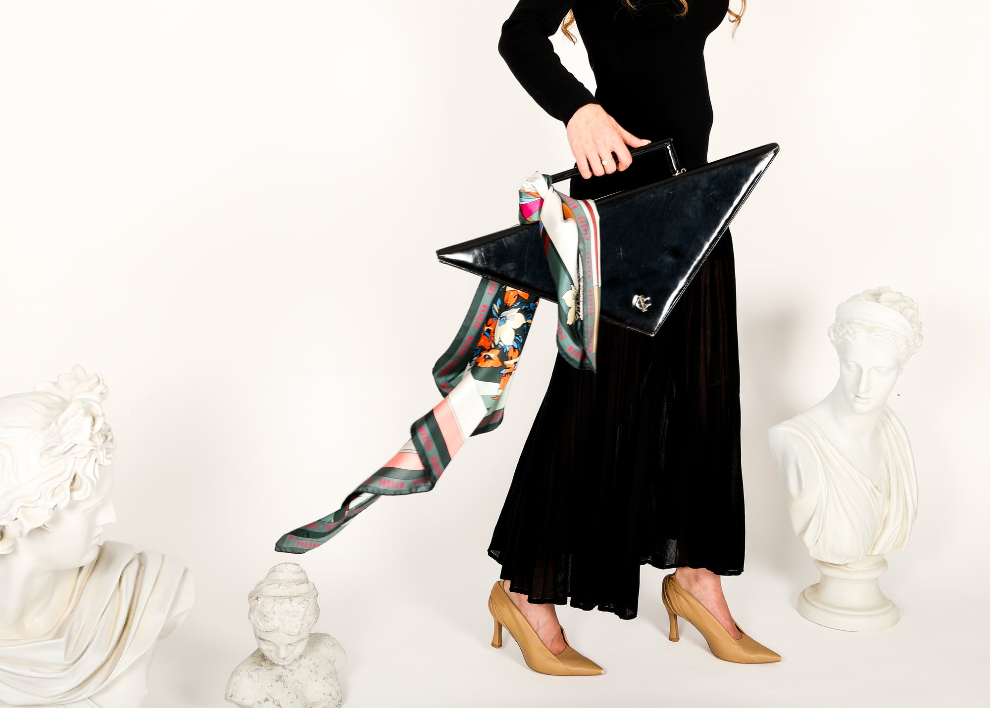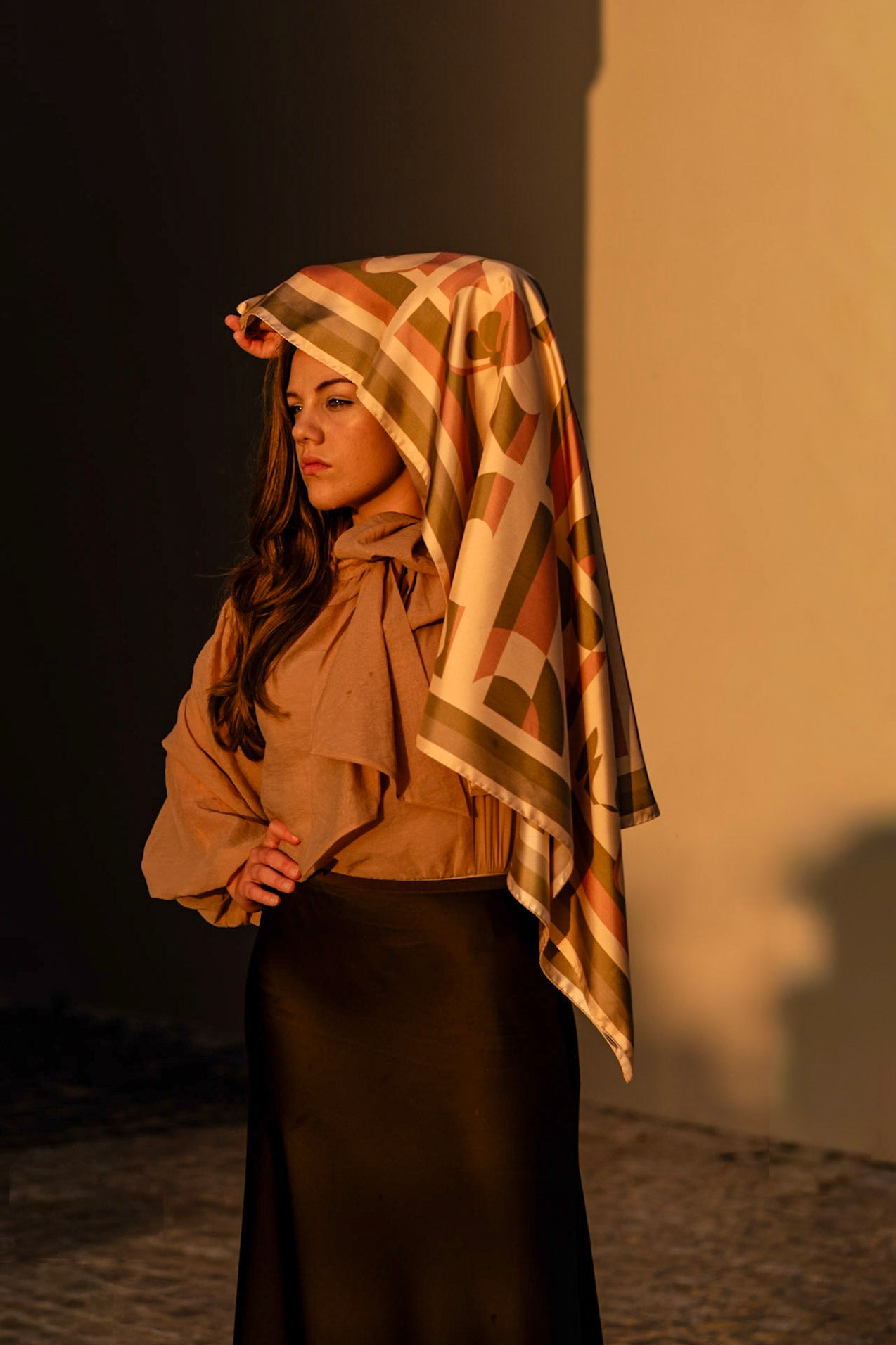 Silk scarves slip seamlessly into the night. Draped over shoulders, tied with quiet ease, or catching the glow of city lights - they become companions to the evening’s unfolding stories.